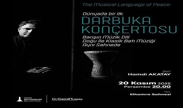 Başta darbuka olmak üzere bendir, kahon, tef ve kudüm gibi enstrümanlarla kendine has bir müzik icra eden Şef Hamdi Akatay, “Barışın Müzik Dili” adıyla Doğu’nun ritimlerini ve Batı’nın klasik müziğini aynı sahnede buluşturacak. İzmir Büyükşehir Belediyesi ev sahipliğinde 20 Kasım Perşembe saat 20.00’de Elhamra Sahnesi’nde düzenlenecek “Darbuka Konçertosu”, dünyada bir ilk olma özelliği taşıyor. Bu özel gecede, darbukanın büyüleyici tınıları klasik orkestra ile harmanlanarak izleyicilere unutulmaz bir deneyim yaşatacak. Tüm İzmirliler, bu müzik yolculuğuna ücretsiz katılabilecek.Hamdi Akatay sahnedeÇok sayıda albümde perküsyon icracısı olarak katkı veren Hamdi Akatay, içinde yer aldığı uluslararası projeler kapsamında Berlin Filarmoni ve Kraliyet Filarmoni orkestraları gibi senfonik orkestralara eşlik ederken, doğaçlama caz performansları da gerçekleştiriyor. Evrensel Darbuka Metodu (2013) adlı kitabı ile Türkiye coğrafyasına ait ritim kültürünün çeşitliliğinin anlaşılmasına katkıda bulunan Akatay, İzmir'in Tepecik semtinde yaşayan Romanlar’dan oluşan Tepecik Filarmoni Orkestrası'nın da kurucusu.
