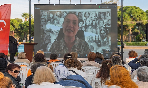 İzmir Büyükşehir Belediyesi, 25 Kasım Kadına Yönelik Şiddete Karşı Uluslararası Mücadele Günü’nde “Eşit İzmir Eşit Dünya” temalı uluslararası video konferans etkinliği düzenledi. Gazetecilerden akademisyenlere, sanatçılardan siyasetçilere kadar çok sayıda kadın, Kültürpark’ta toplanan kadınlara seslenerek “Buradayım, iyiyim” mesajı verdi.